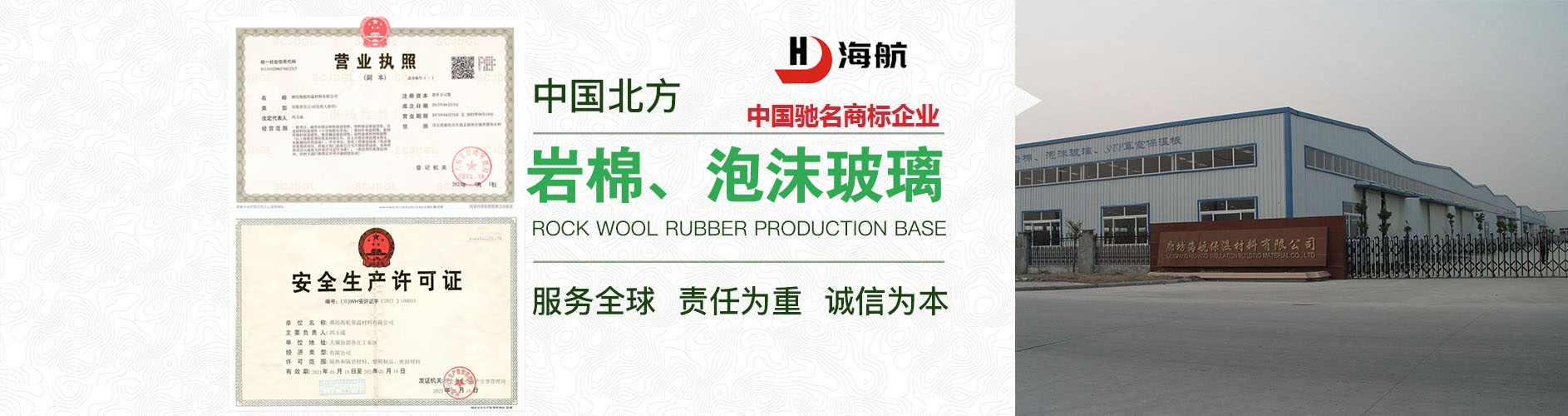 廊坊市海航保溫材料有限公司 地處河北廊坊留各莊高新技術(shù)產(chǎn)業(yè)園區(qū),是集研發(fā)、生產(chǎn)和銷售于一體的大型企業(yè),擁有11年保溫建材行業(yè)生產(chǎn)經(jīng)驗(yàn),公司產(chǎn)品齊全,其中泡沫玻璃制品包括: 泡沫玻璃保溫板 、 泡沫玻璃保溫管 、 泡沫玻璃保溫磚 ; 巖棉制品包括 : 巖棉板 、 復(fù)合巖棉板 、 外墻巖棉板 、 巖棉氈 、 巖棉條 、 巖棉管 等保溫材料。 產(chǎn)品廣泛應(yīng)用于地鐵、樓房屋頂、外墻防火隔離帶、石化、發(fā)電、航天、 鋼鐵、煉油、乙烯等行業(yè)的保冷、防腐、工程中。采用世界先進(jìn)的設(shè)備,成熟的工藝生產(chǎn),智能化操控,廢棄物循環(huán)利用,產(chǎn)品質(zhì)量超過美國ASTM標(biāo)準(zhǔn), 公司年產(chǎn)量50萬立方米的泡沫玻璃,80萬立方米橡塑海綿,5萬噸巖棉制品,4萬噸玻璃棉制品,16萬立方米擠塑板